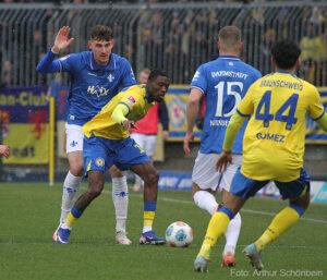 Dabei hatte zunächst vieles gegen die Südhessen gesprochen. In der Anfangsphase kam Eintracht Braunschweig zu den besseren Möglichkeiten, doch Marcel Schuhen reagierte gegen Opoku und Ehlers stark. Kurz vor der Pause folgte dann der Doppelschlag: Erst verwandelte Aydin einen Strafstoß (41.), ehe Gomez nach einem verlängerten Einwurf zum 2:0 traf (45.+2).