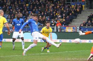 Doch nach dem Seitenwechsel zeigten die Lilien ein anderes Gesicht. Mit viel Druck, Tempo und klarer Überlegenheit arbeiteten sie sich zurück ins Spiel. Nach einer kurz ausgeführten Ecke brachte Sergio López den Ball butterweich in die Mitte, Matej Maglica köpfte zum Anschluss ein (56.).