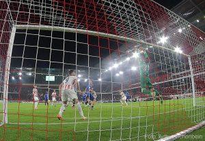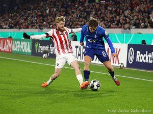 Kurz vor der Pause ging Freiburg dann in Führung: Nach einem Foul von Pfeiffer verwandelte Vincenzo Grifo den fälligen Strafstoß sicher unter die Latte (42.). Mit dem knappen Rückstand ging es in die Kabinen.