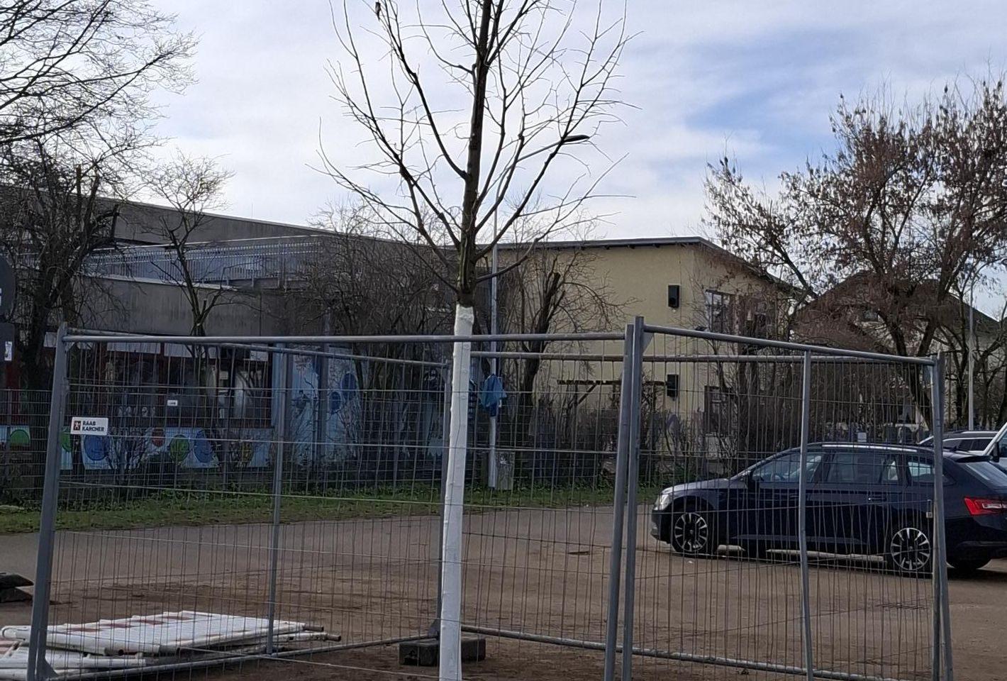 To protect the roots, a drive-over tree grate will be installed above ground so that the area can continue to be used as a parking lot. Since the installation of this tree grate cannot take place until January 2026, the newly planted tree is currently secured with a construction fence.