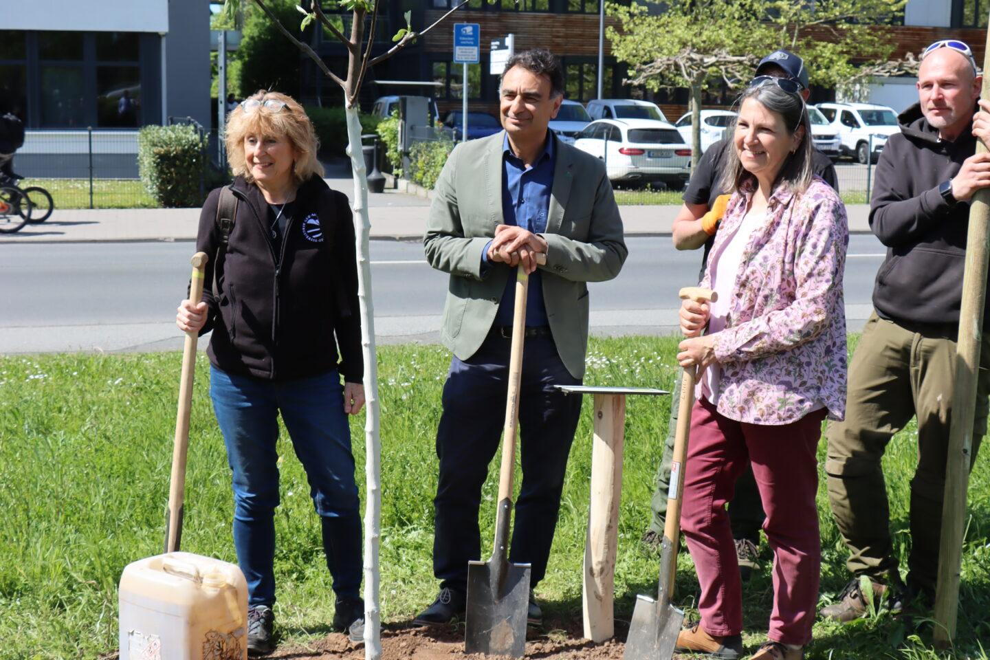 Imagen destacada: El viernes, Jutta Weber, directora general del Parque Geo-Natural; Adil Oyan, primer subadministrador del distrito de Groß-Gerau; y Monika Dyballa, responsable de las instalaciones exteriores de la administración del distrito, plantaron un membrillo peral frente a la oficina del distrito de Groß-Gerau, con el apoyo del personal del Parque Geo-Natural de Bergstraße-Odenwald. Con esta acción, la variedad fue nombrada oficialmente Fruta del Año 2026. Foto: Administración del distrito de Groß-Gerau