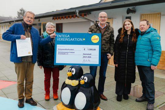 Un chèque de 1 500 euros a été remis au lauréat de l’Association de la piscine extérieure de Crumstadt pour son projet de protection du climat.