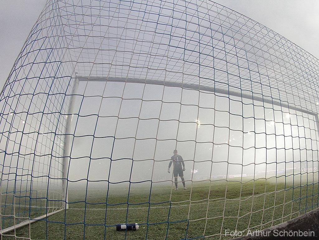 Peu après, un événement survint, ayant un impact significatif sur le cours du match. Quelques minutes avant le but de Fraser Hornby (1-0), les supporters de Darmstadt, très actifs dans la tribune sud, déclenchèrent une importante gerbe d'engins pyrotechniques. Immédiatement après la célébration du but, une épaisse fumée envahit le stade, rendant la visibilité sur le terrain parfois difficile. La rencontre dut être interrompue pendant plusieurs minutes.