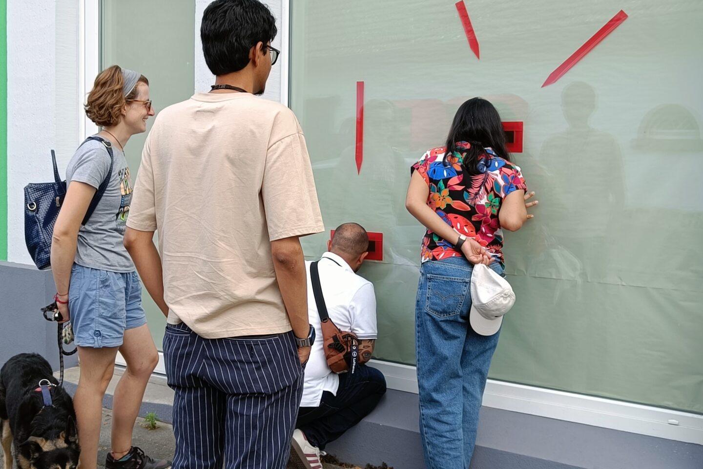 Seit Juli 2025 war die Installation ausschließlich von außen sichtbar – durch zwei kleine Öffnungen in der Glasfront. Eine befand sich auf Erwachsenenhöhe, die andere auf Kinderhöhe. Besucher konnten so einen Blick in den Innenraum werfen und eigene Wahrnehmungen entwickeln.