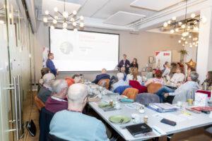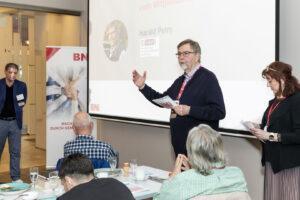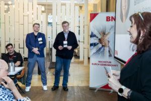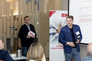Presso il BNI-Darmstadt Büchner, una rete di imprenditori, oltre 30 si incontrano ogni venerdì alle 6:45 per fare networking e stringere contatti.