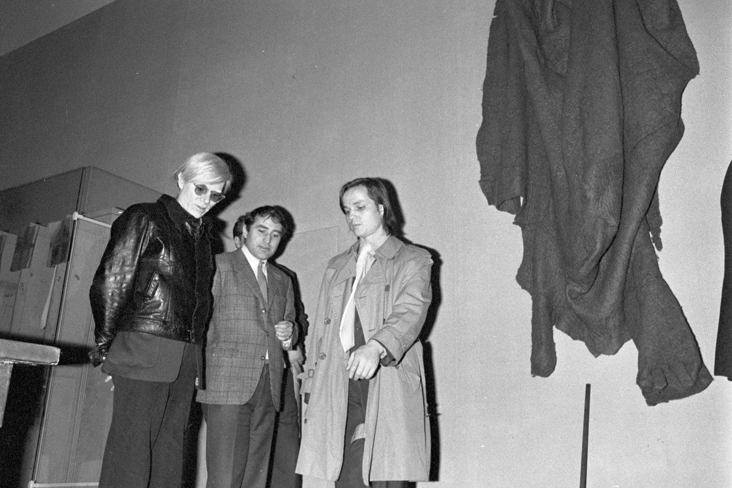 Immagine in primo piano: Andy Warhol, Gerhard Bott e Franz Dahlem nel Beuys Block nel 1971. Foto: Werner Kumpf, Hessisches Landesmuseum Darmstadt