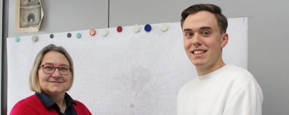 Immagine in evidenza: la direttrice dei servizi pubblici della città Saskia Kirsch e lo studente di doppio corso Florian Schmidt. Foto: Città di Riedstadt