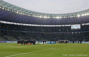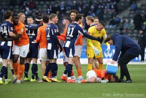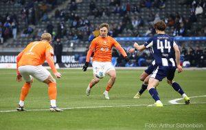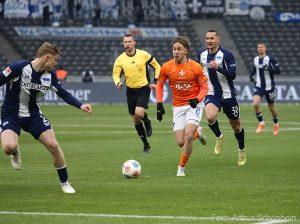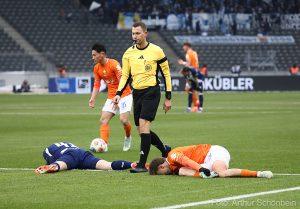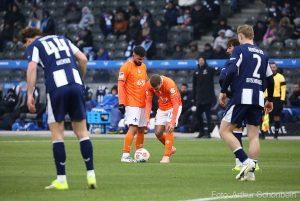 Quasi dal nulla, una nuova speranza è nata poco prima dell'intervallo, quando Marseiler ha subito fallo in area di rigore. Hornby ha trasformato con sicurezza il conseguente rigore, accorciando le distanze. Il Darmstadt è uscito dagli spogliatoi con rinnovato vigore, ed è stato premiato: Hornby ha trasformato un cross di López al 62° minuto per il pareggio. Dopo un cartellino rosso per l'Hertha, il Darmstadt ha giocato in superiorità numerica, ma non sono stati segnati altri gol. Così, dopo una partita combattuta, il Darmstadt ha riportato un punto all'Assia meridionale.