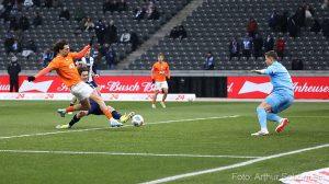 La partita è iniziata in modo disastroso: al secondo minuto, la squadra di casa ha capitalizzato una palla persa per portarsi in vantaggio, con Reese che ha battuto Schuhen da distanza ravvicinata. Il Berlino è rimasto inizialmente la squadra più attiva e ha ulteriormente ampliato il vantaggio dopo un quarto d'ora, quando Eitschberger ha siglato il 2-0 sfruttando un altro errore del Darmstadt. Il Darmstadt ha faticato inizialmente, ma ha gradualmente trovato il suo equilibrio con il progredire della partita.