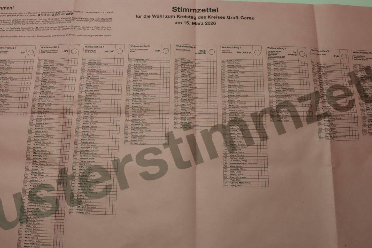 Beim Musterstimmzettel zur Kreiswahl am 15. März 2026 ist auf der Rückseite ein Druckfehler aufgetreten. Wie der Kreiswahlleiter mitteilt, wurde der Text der ergänzenden Erläuterungen „So wählen Sie richtig“ teilweise unvollständig abgedruckt.