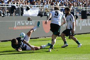 Schalke musiał się skończyć w ciągu ostatnich kilku minut po odłożeniu Grügera z boiska w 76. minucie z żółtą czerwoną. Sześć minut przed końcem Hornby próbował ponownie z Schlenzer, ale ten wniosek również nie powiodł się (84.). Ale to nie zmieniło dobrze zachowanego zwycięstwa lilii, które z czasem sprowadziły swoje przywództwo i byli w stanie zdobyć trzy ważne punkty.