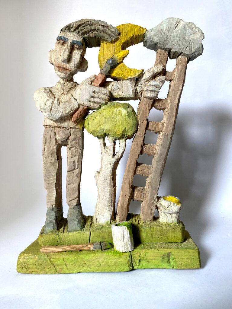 Wolfgang Aulbach prezentuje drewniane rzeźby charakteryzujące się archaicznym językiem formalnym. Surowo ociosane, w większości pomalowane postacie wydają się jednocześnie krytyczne, prowokujące i zabawne. Ich obrazowanie wymyka się prostej interpretacji i zachowuje pewien enigmatyczny charakter.