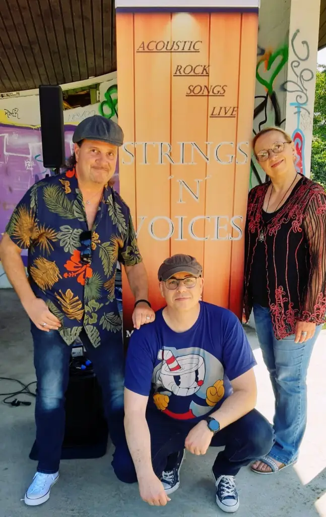 Hinter dem Namen „Strings’n’Voices“ stehen Marina Steinmetz-Ecker und Uwe Steinmetz sowie Gitarrist und Sänger Lothar Will. Das Programm besteht aus bekannten Rock- und Pop-Hits, die in akustischen Versionen neu interpretiert werden. Mehrstimmiger Gesang und harmonische Arrangements prägen den Stil des Trios.