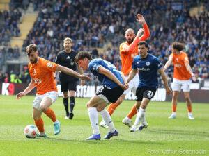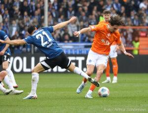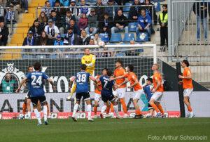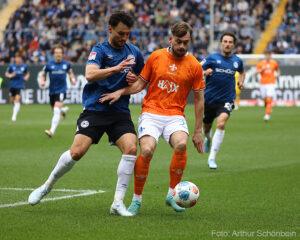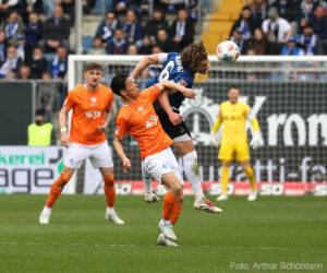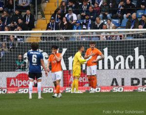 Doğu Vestfalyalılar maça güçlü başladı, ancak ilk büyük fırsat Darmstadt'ın oldu. Killian Corredor içeri doğru kesti ve kaleci Kersken'i iyi yerleştirilmiş bir şutla test etti (4'). Sadece iki dakika sonra, konuk ekip kutlamaya başladı: Serbest vuruş organizasyonunun ardından Fraser Hornby topu Maglica'ya bıraktı ve Maglica topu güçlü bir vuruşla ağlara göndererek Darmstadt'ı 1-0 öne geçirdi (6').