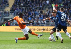 Sonuç olarak, Bielefeld giderek kontrolü ele geçirdi ve Darmstadt'ın kalesinin önünde defalarca tehlikeli pozisyonlar yarattı. Darmstadt hücumda pek etkili olamadı ve dar farkla önde olduğu maçı devre arasına kadar sürdürmeyi başardı.