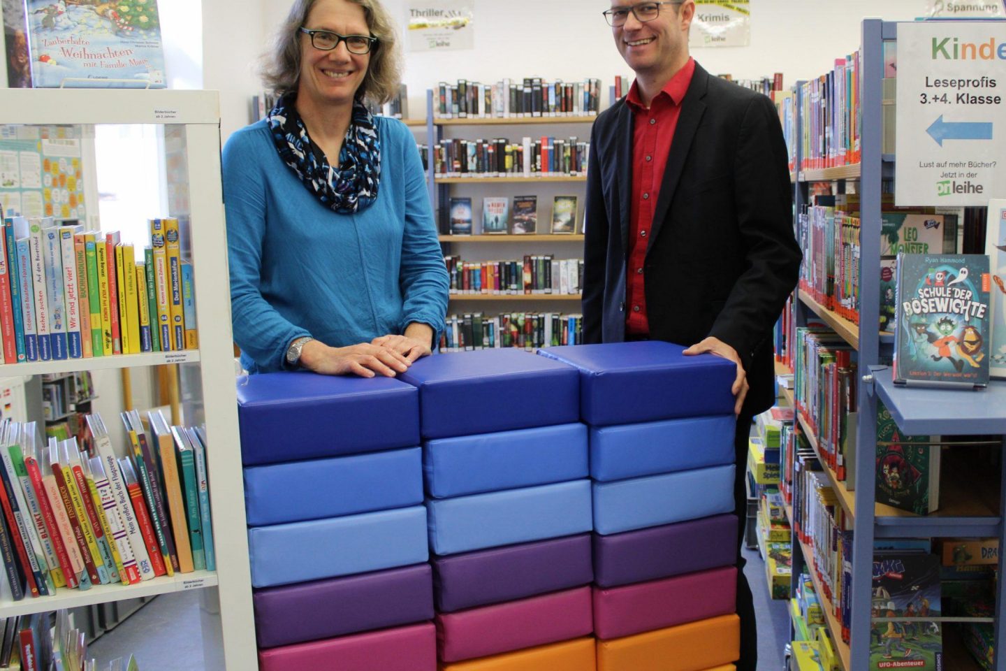 Erfelden belediye kütüphanesinde, popüler hikaye anlatımı ve okuma etkinlikleri için yakında daha fazla alan ve konfor sağlayacak renkli minderler yerleştirilecek. Sarı ve turuncudan mor ve maviye kadar değişen tonlardaki yeni minderler ve bazı rafların tekerlekli hale getirilmesi, Sparkasse Groß-Gerau Vakfı tarafından finanse edildi.